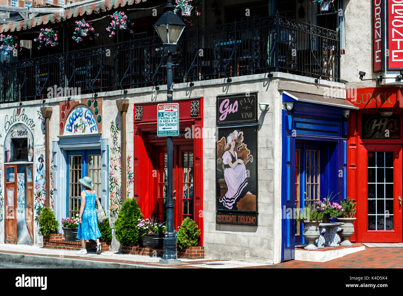 Woman Walking In Front Of Colorful Italian Restaurant Little Italy Neighborhood Baltimore Maryland Usa Stock Photo Alamy